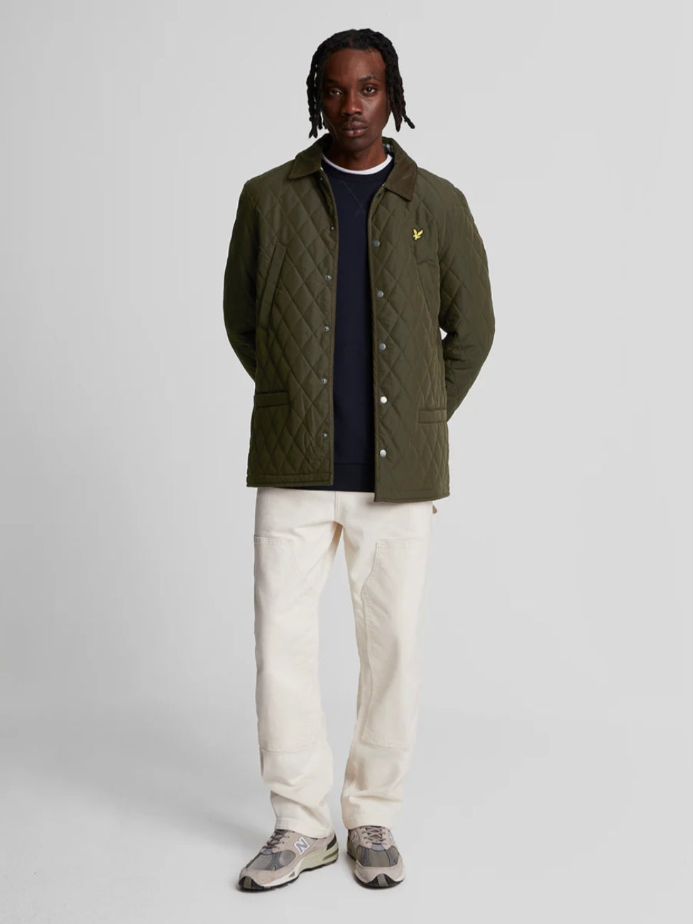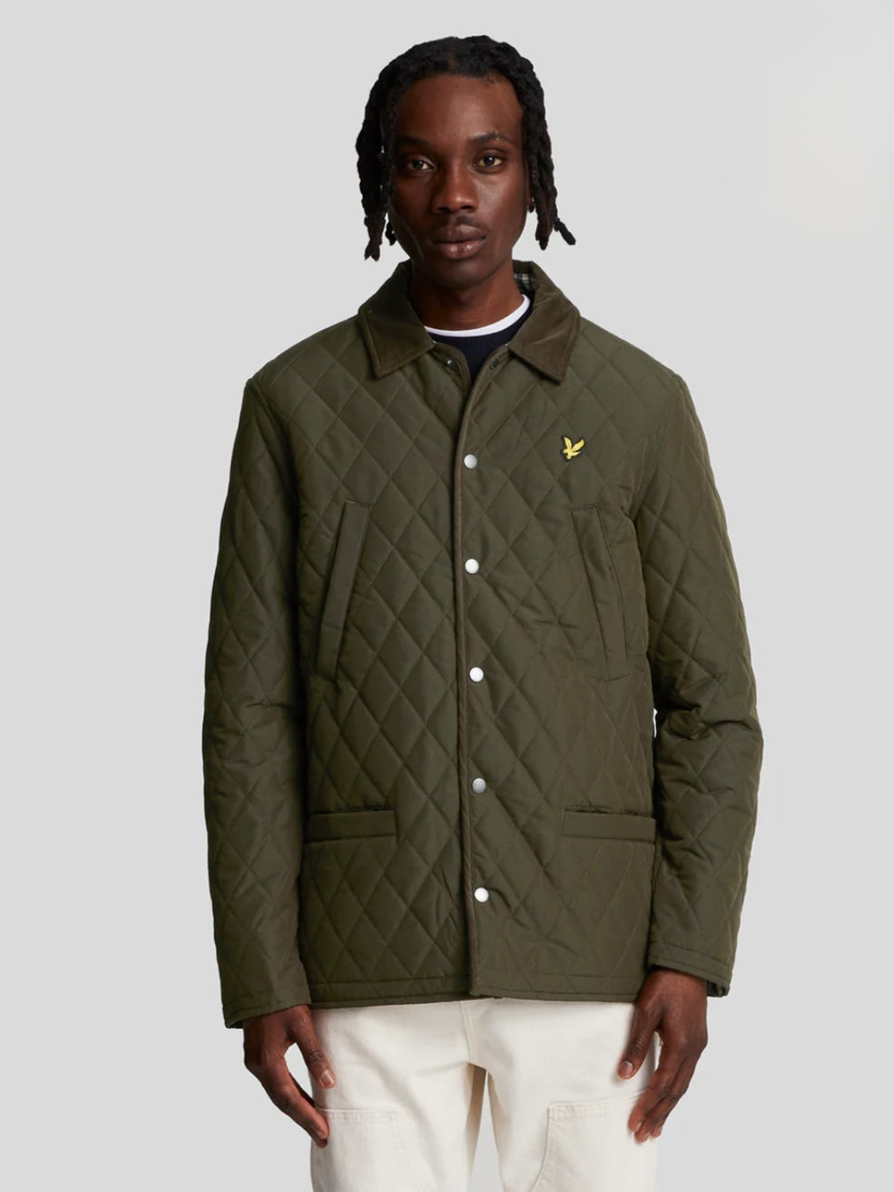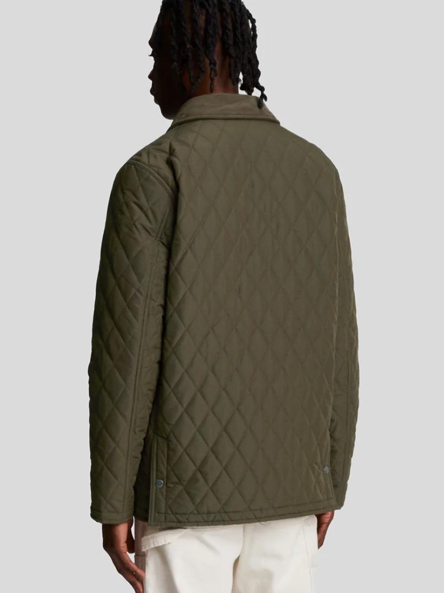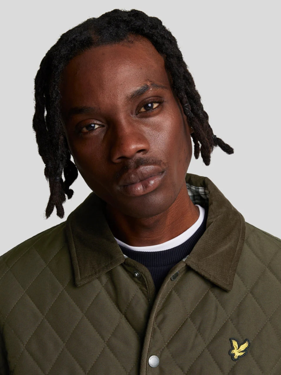 Questa giacca presenta una trapunta a rombo in un elegante colore oliva, perfettamente abbinata al colletto in velluto a coste. L'interno è rifinito con una fodera a stampa tartan che celebra le origini scozzesi del brand.